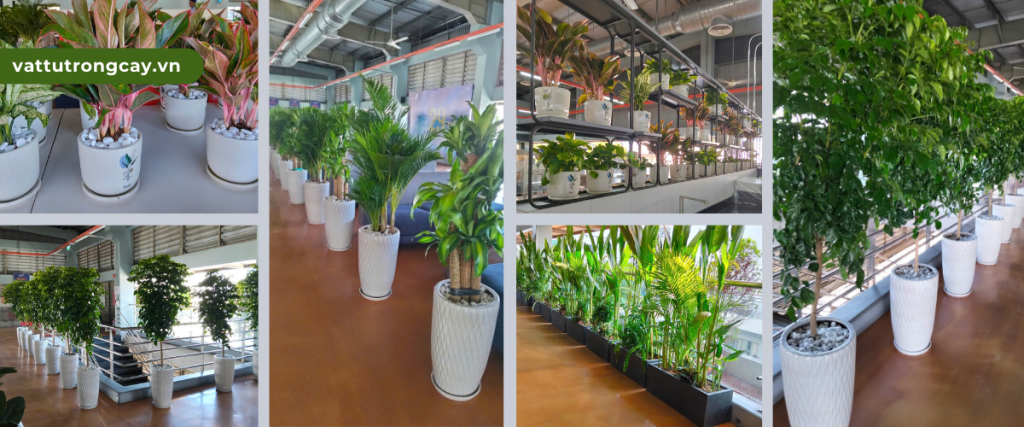 Cây phong thủy: hợp chậu sứ tráng men, chậu composite.