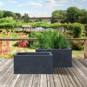 Chậu đá mài hình chữ nhật kích thước 30cm x 60cm là loại chậu phổ biến nhất hiện tại, chúng mang vẻ đẹp nhẹ nhàng theo phong cách châu âu. Phù hợp để đặt trên ban công, dọc tường rào…