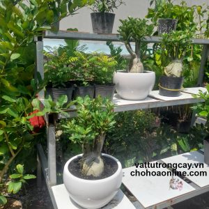 Chậu sứ tráng men trứng tròn là một trong những mẫu chậu được ưu chuộng có miệng rộng, đáy nhỏ thân phình to thích hợp với nhiều loài cây cảnh khác nhau mang nét đẹp sang trọng cho không gian trưng bày