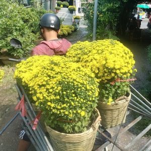 - Khi kết hợp với giỏ tre cần xé, vẻ đẹp mộc mạc của tre và sắc vàng rực rỡ của cúc mâm xôi tạo nên một không gian gần gũi, ấm cúng, đậm chất truyền thống Việt Nam.