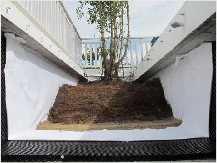 Một số loại cây như sung, si, đa, mít… có hệ rễ mạnh, dễ xuyên qua lớp lót và làm hỏng bề mặt sàn, đường ống thoát nước. Vải địa kỹ thuật giúp tạo lớp chắn ngăn rễ xuyên, bảo vệ công trình và giúp cây phát triển theo hướng kiểm soát.